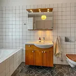 Badeværelset har separat toilet, et badekar og en bruser, som gæsterne kan benytte sig af.